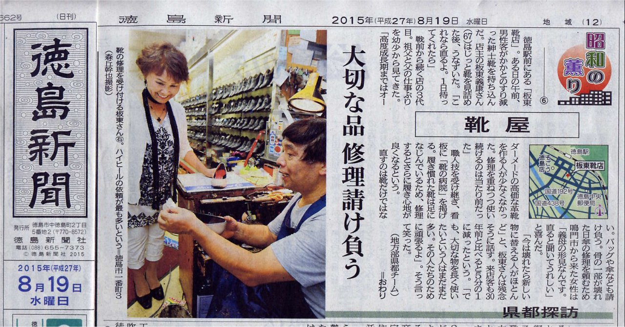 | 徳島新聞朝刊 2015年8月19日掲載 昭和の薫り 靴屋 | |||