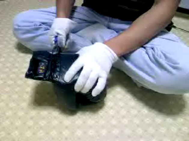 無理に押し込むと破損するので皮袋を徐々に被せる感じ、クッションベースは左右の別有り