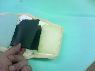 親指側に追加用低反発クッションの切り込み位置を合わす