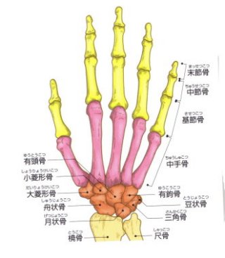 | 間違った経験談 | 拳を負傷した練習者に時として「拳の鍛え方が足りない」と教える指導者が居る。 手の骨格写真から明らかなとおり鉄より固い人間の骨が存在するとは理解出来ない。 骨粗鬆症の様に個人差も大きく存在する。 熟練者は痛めない様に打撃するのが巧くなってる可能性が高いだけ。 若い頃の経験だけで年齢を経てから自身が防具練習から離れており、運良く痛める前に保護していたのを恐らく忘れている。 |