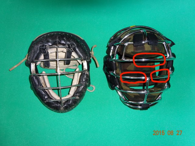 | 1.現行関西面は関東面に比べると横筋間隔が広い。 2.眼前縦筋が無い。 3.関東面 1.55Kg 4.関西面 2.3Kg |