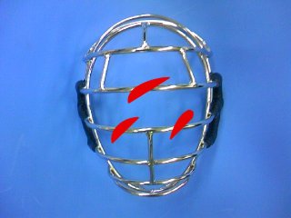 | 眼前部に縦筋を設ける事で単独横筋のみを打撃する可能性が低下する 横筋間隔を凡そ均等に配置する 打撃時の反力を軽減する軽量面金に変更 縦筋は6mmφ 横筋は女子 6mmφ、男子 6〜7mmφ 面パットは衝撃吸収型を採用する 徳大式防具面パットと組み合わせると総重量は2Kg未満になる。 |