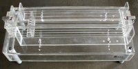 ウサギ用に新開発した代謝ケージ 透明アクリル製で動物の状態を常時観察できる。 高さ、幅、長さを簡単に調節可能。 特注仕様の依頼はご連絡下さい。