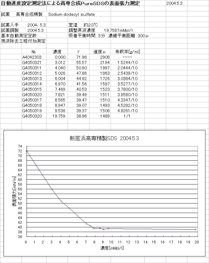 ƒAƒjƒIƒ“«ŠE–ÊŠˆ«Ü‘ª’è•û–@‚ɂĸ»SDS‚Ì•\–Ê’£—͂𑪒肵‚½B