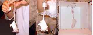 新開発の専用フックを使用すれば順応時間は不要でマウスに負担なくワンタッチで吊り下げができます。 研究者の要望に基づき新開発、実験作業の非常な効率化が計れます。 (使用写真を参照して下さい)