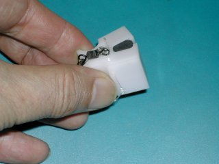 標準使用方法 1.尾懸垂クリップのフックを架台等に固定する。 2.マウス尻尾の先端を指先で摘み持ち上げる。 3.尾懸垂クリップのクッション部で尻尾の中間部を挟む。 |
