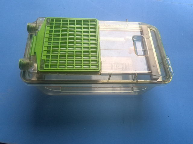 写真のケージでは滑り軸から底面まで 約13cm ケージの全高は約15cm |