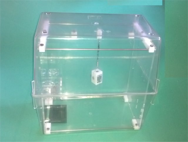 | 尾懸垂クリップの開発により尾懸垂試験は簡単で安定した測定になった。 市販ラットケージを2個使用した簡易方式滑動式架台を新たに開発した。 標準的なラット飼育ケージは殆どの研究機関で所有し活用出来ます。 ラット尾懸垂滑車と組み合わせてラットのストレスを軽減。 給水瓶と餌箱取り付け可能、上部から給水と給餌交換可能 ストレスの少ない滑動式尾懸垂飼育装置が簡単に構築出来ます。 2015年7月16日 |